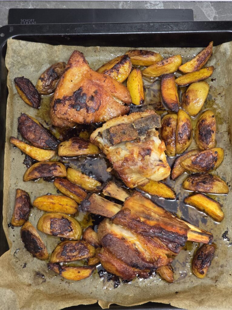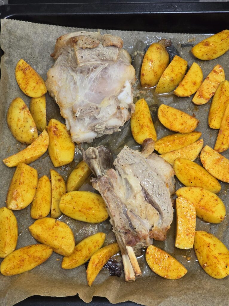 - Baking tray – Large enough to fit the meat and potatoes