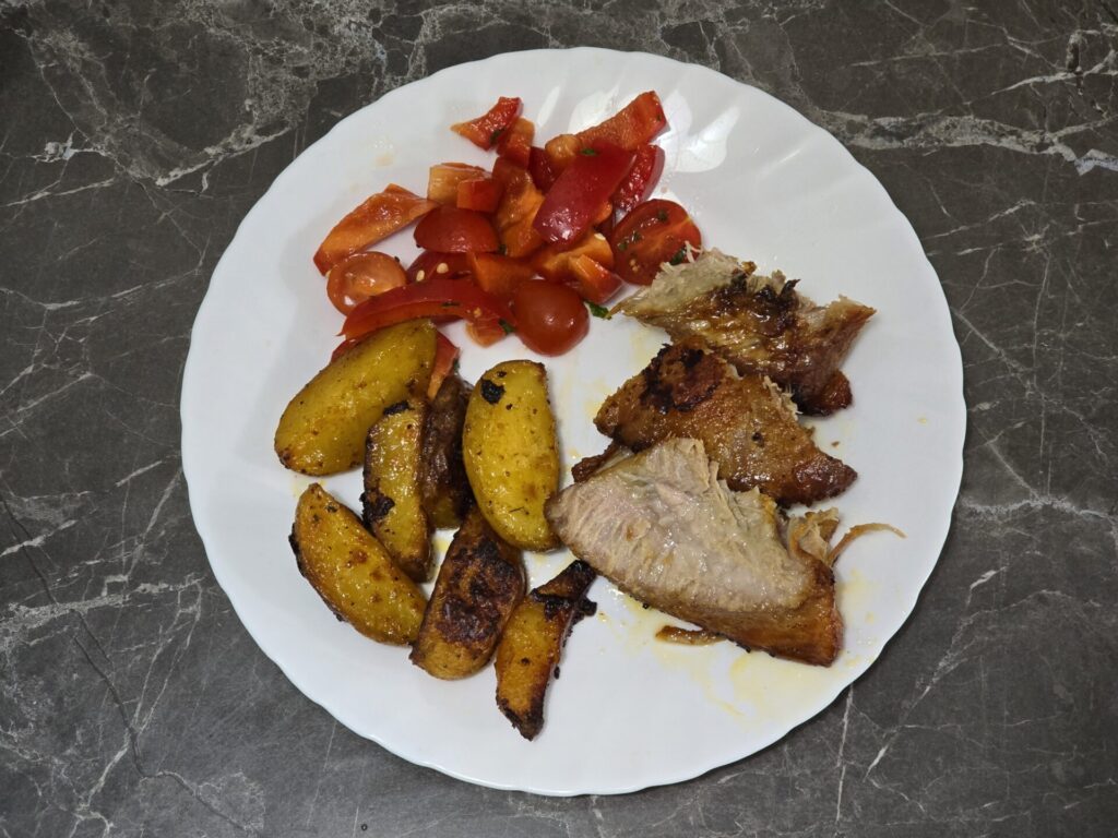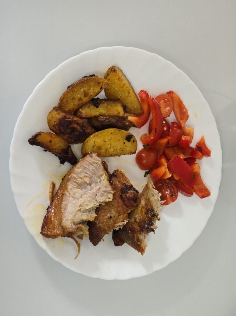 ⚠️ Caution: This is not diet food! This is for people who love rich, flavorful, fatty meat. The kind of meal you sit down to enjoy, not just eat. Add in crispy roasted baby potatoes and a fresh tomato and bell pepper salad, and you’ve got a feast that never disappoints.